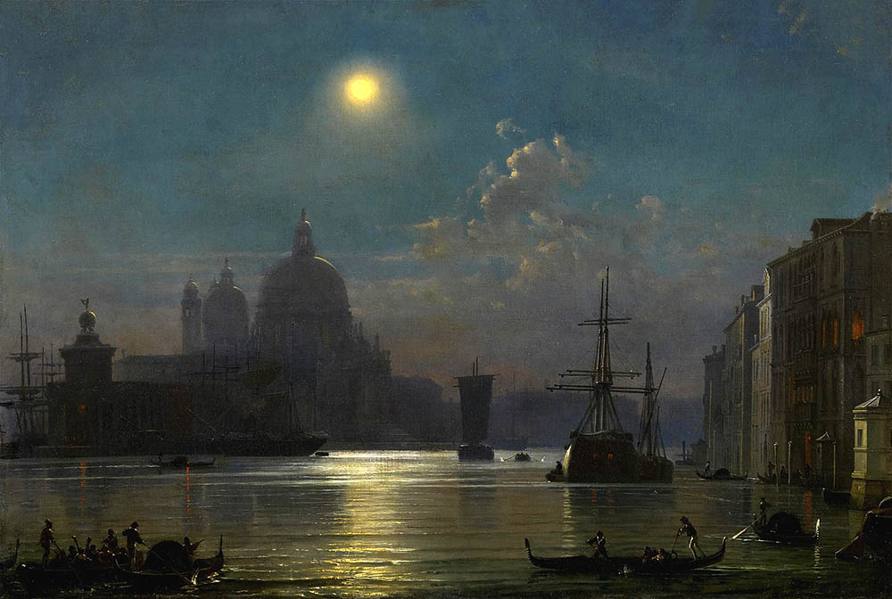 Friedrich Nerly’s art is firmly rooted in German Romanticism, but Romanticism, as a broad movement, emphasized emotion, individualism, the power of nature, and often a fascination with the past and the non-native. Caspar David Friedrich (1774–1840) was the central influential figure of German Romanticism. While there is no evidence they met, Nerly’s Venetian moonlights and sunsets echo Friedrich’s metaphysical approach; though Nerly remained more topographical and less symbolic.